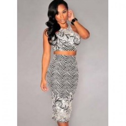 Black White Print Two Pieces Dress
